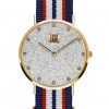 Movimento al quarzo, Cassa in acciaio IP rosè in tre pezzi, Fondello in acciaio, Quadrante pavè con strass, Vetro minerale, Diametro cassa 36 mm. Cinturino passante in nylon.
