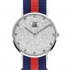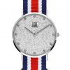Movimento al quarzo, Cassa in acciaio in tre pezzi, Fondello in acciaio, Quadrante pavè con strass, Vetro minerale, Diametro cassa 36 mm. Cinturino passante in nylon.