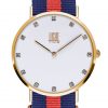 Movimento al quarzo, Cassa in acciaio IP rosè in tre pezzi, Fondello in acciaio, Quadrante con strass, Vetro minerale, Diametro cassa 40 mm. Cinturino passante in nylon.