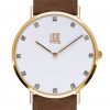 Movimento al quarzo, Cassa in acciaio IP rose in tre pezzi , Fondello in acciaio, Quadrante con strass, Vetro minerale, Diametro cassa 40 mm. Cinturino in pelle scamosciata beige,