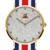 Movimento al quarzo, Cassa in acciaio IP rosè in tre pezzi, Fondello in acciaio, Quadrante pavè con strass, Vetro minerale, Diametro cassa 40 mm. Cinturino passante in nylon.