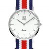 Movimento al quarzo, Cassa in acciaio in tre pezzi, Fondello in acciaio, , Vetro minerale, Diametro cassa 36 mm. Cinturino passante in nylon.