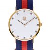 Movimento al quarzo, Cassa in acciaio IP rosè in tre pezzi, Fondello in acciaio, Quadrante con strass, Vetro minerale, Diametro cassa 36 mm. Cinturino passante in nylon.